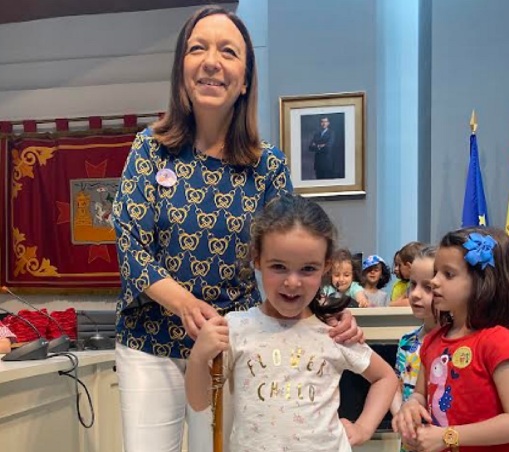 La alcaldesa, Rosa Melchor, los ha recibido en el Salón de Plenos, ha contestado a sus preguntas y les ha mostrado el bastón de mando de la alcaldía.