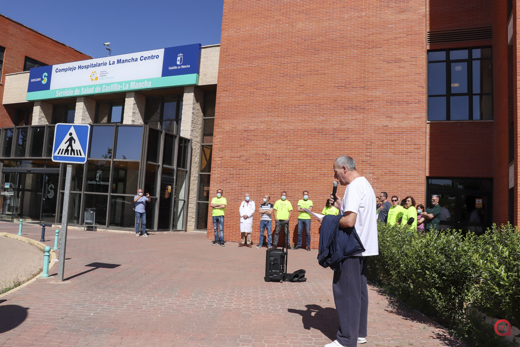 Una docena de trabajadores del área de informática del Sescam se han movilizado a las puertas del Hospital Mancha Centro de Alcázar de San Juan para reclamar la aplicación de la nueva Ley que insta a la reducción de la temporalidad en el empleo público.