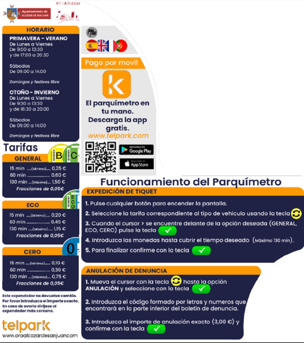 Además se amplía el tiempo que permite la cancelación de la sanción para evitar multas. Asimismo aumenta el tiempo máximo de aparcamiento para que sea exacta la cantidad y no sea necesario buscar cambio.