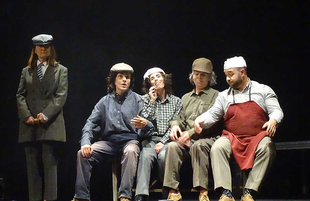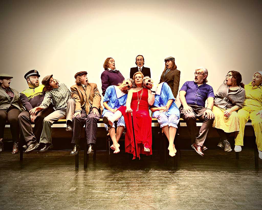 Un total de quince alumnos y alumnas se subían al escenario para representar esta comedia trágica de Friedrich Dürrenmatt que narra la historia de Clara Zachanassian que regresa a su ciudad natal, Gula-una pequeña localidad suiza empobrecida tras la II Guerrra Mundial-. En su juventud, Clara Zachanassian tuvo que <