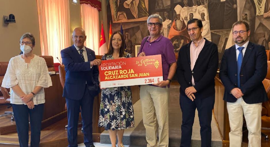 La alcaldesa, Rosa Melchor, el presidente de la Diputación de Ciudad Real, José Manuel Caballero, y el vicepresidente y concejal del Ayuntamiento de Alcázar de San Juan, Gonzalo Redondo, fueron los encargados de entregar el cheque simbólico con la recaudación obtenida, al tesorero de Cruz Roja Alcázar de San Juan, Víctor Cerezuelo.