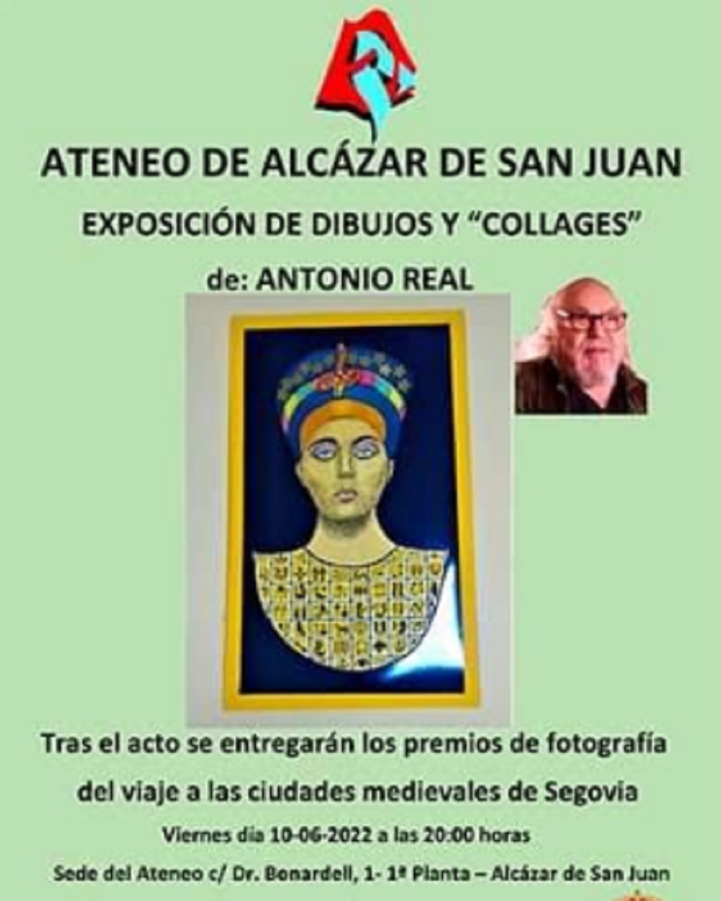 Antonio Real, miembro del Ateneo de Alcázar de San Juan, expone sus dibujos y collages desde este viernes, 10 de junio. Es fotógrafo pero, entre sus muchas habilidades, se encuentran el dibujo, y la realización de “collages”. Así describe el Ateneo su muestra: