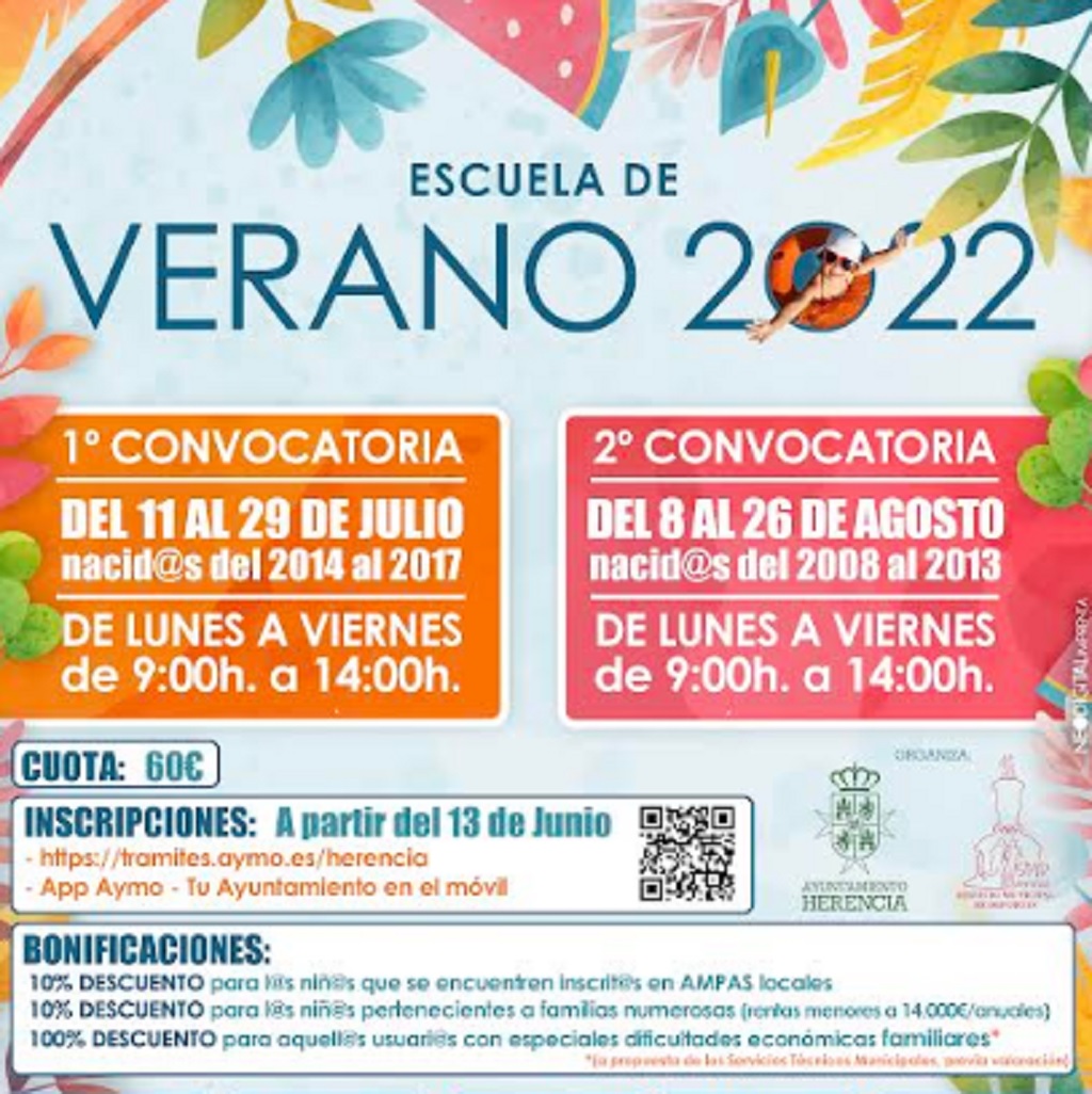 En marcha una nueva edición de la Escuela de Verano organizada por el Servicio Municipal de Deportes del Ayuntamiento de Herencia para esta temporada estival. Una actividad cuyas inscripciones comenzarán el próximo lunes 13 de junio de manera telemática a través de la App móvil o mediante el siguiente enlace https://tramites.aymo.es/herencia.