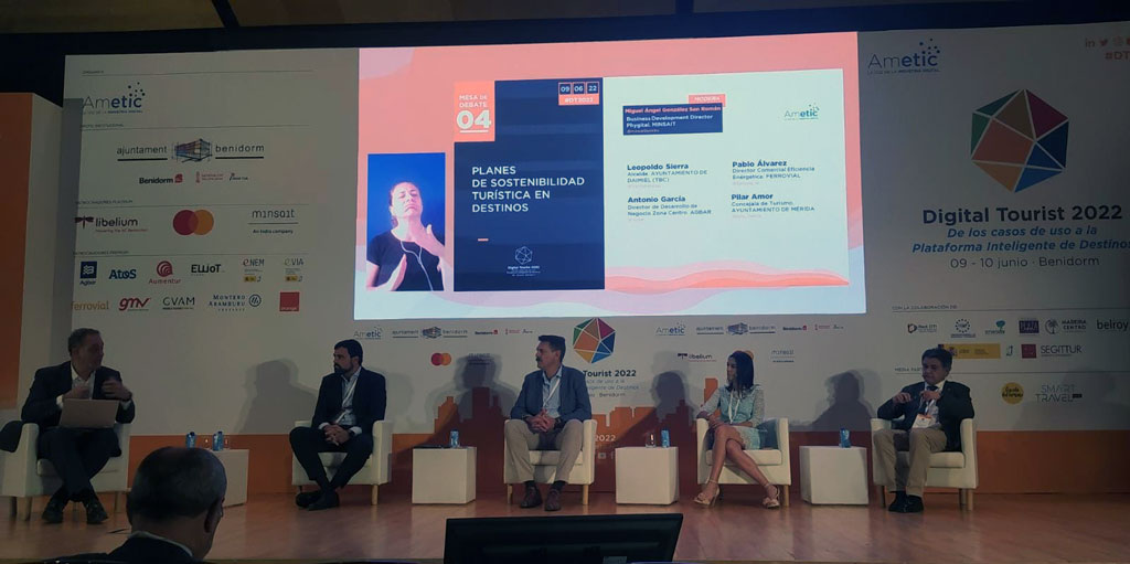 El alcalde de Daimiel, Leopoldo Sierra, ha compartido este jueves en la mesa de debate a cuatro bajo el nombre ‘Planes de Sostenibilidad Turística en Destinos’ el modelo que emplea su Ayuntamiento para compaginar la calidad turística con otros aspectos como la sostenibilidad, la digitalización y la eficiencia energética. El primer edil ha intervenido de este modo en el Congreso Digital Tourist 2022 que se celebra en Benidorm, coincidiendo con la entrega de premios organizada por AMETIC en sus diferentes categorías y donde el municipio de Sierra presentó candidatura por la categoría de gestión de flujo turístico.