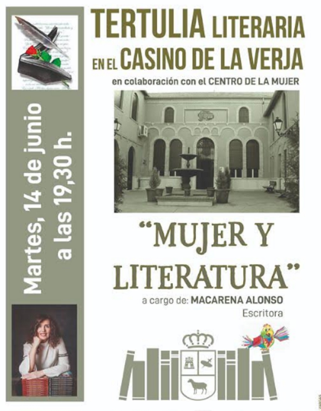 El emblemático Casino de la Verja de Bolaños de Calatrava acogerá mañana martes 14 de junio, a las 19:30 horas, la tertulia literaria ‘Mujeres y Literatura’. La actividad impulsada por la Biblioteca Municipal y el Ayuntamiento, que se encuadra en la programación en torno al Día del Libro, tuvo que ser suspendida el pasado mes de abril por motivos de salud de la toledana Macarena Alonso.