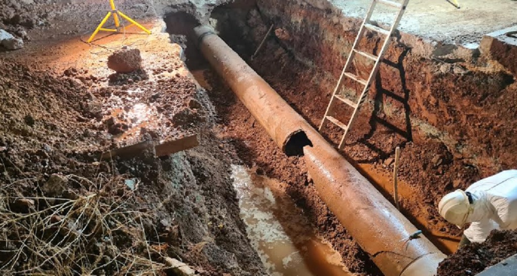 Se procedió a picar parte de la acera y la calzada de hormigón con dos máquinas retroexcavadoras para poder acceder a la totalidad del tramo de tubo a sustituir, sin interferencias significativas con el tendido eléctrico, comunicaciones o agua.