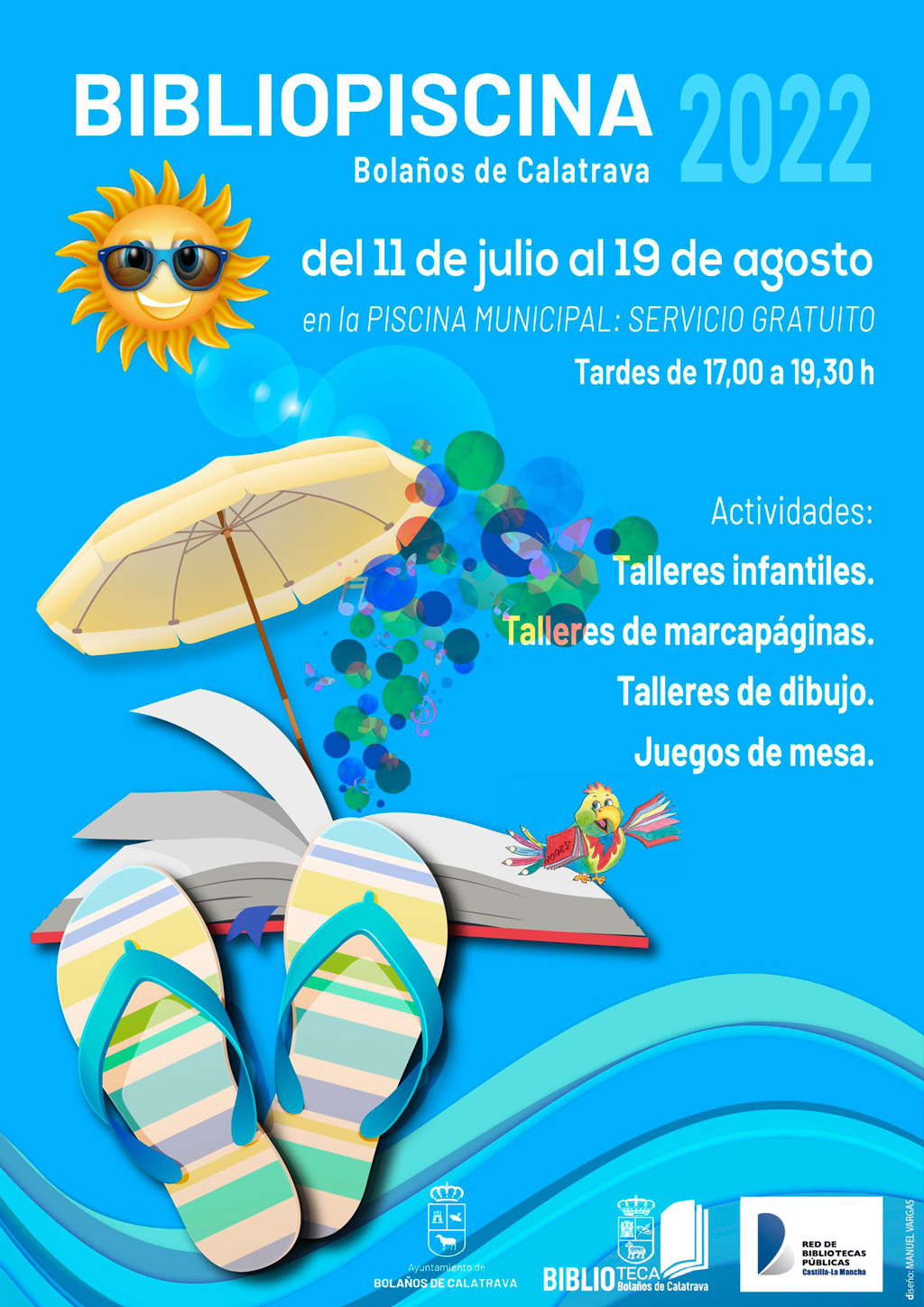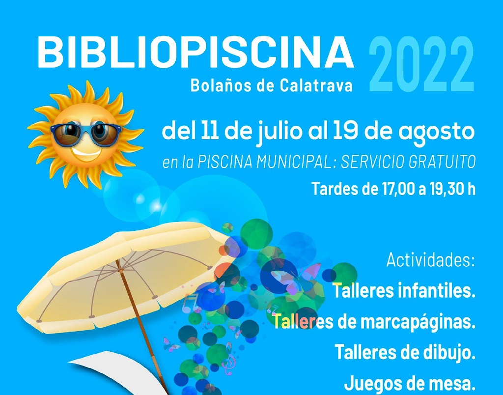 Llega el verano y con él la Biblioteca Municipal cierra sus puertas por la tarde, por eso aprovechará esta época del año para salir de nuevo fuera del recinto de la misma y ocupar otros lugares de la localidad, como la piscina municipal a través del servicio gratuito ‘Bibliopiscina’, desarrollado entre las diferentes concejalías de Cultura, Deporte y Juventud del Excmo. Ayuntamiento de Bolaños.