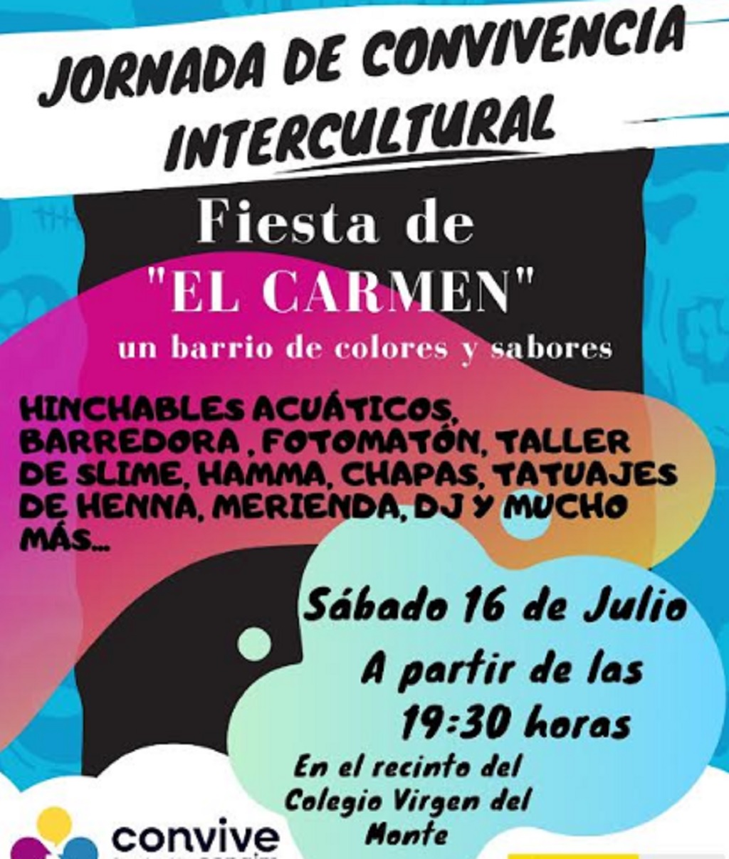 Los vecinos del barrio bolañego de El Carmen celebrarán sus fiestas este sábado 16 de julio con una ‘Jornada de Convivencia Intercultural Fiesta de “El Carmen” un barrio de colores y sabores’, a partir de las 19:30 horas en el recinto del Colegio Virgen del Monte.