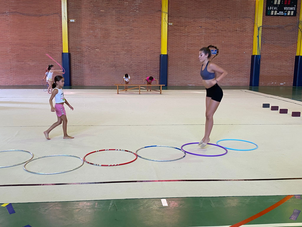 En el campus y en las clases de todo el curso escolar se trabaja toda la iniciación, pero lo bueno de los campus de verano, decía, es que se acercan alumnas nuevas que después se quedan. Son momentos de juegos, de disfrutar y de empezar a conocer la gimnasia rítmica.