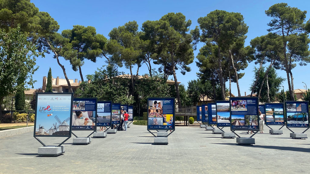 Bajo el título ‘40 años del Estatuto de Autonomía de Castilla-La Mancha’, la exposición hace un repaso completo a los principales hitos alcanzados por la región en estos 40 años de autonomía a través de 21 paneles y 42 caras, recogiendo 22 temas que han marcado un antes y un después en la región.