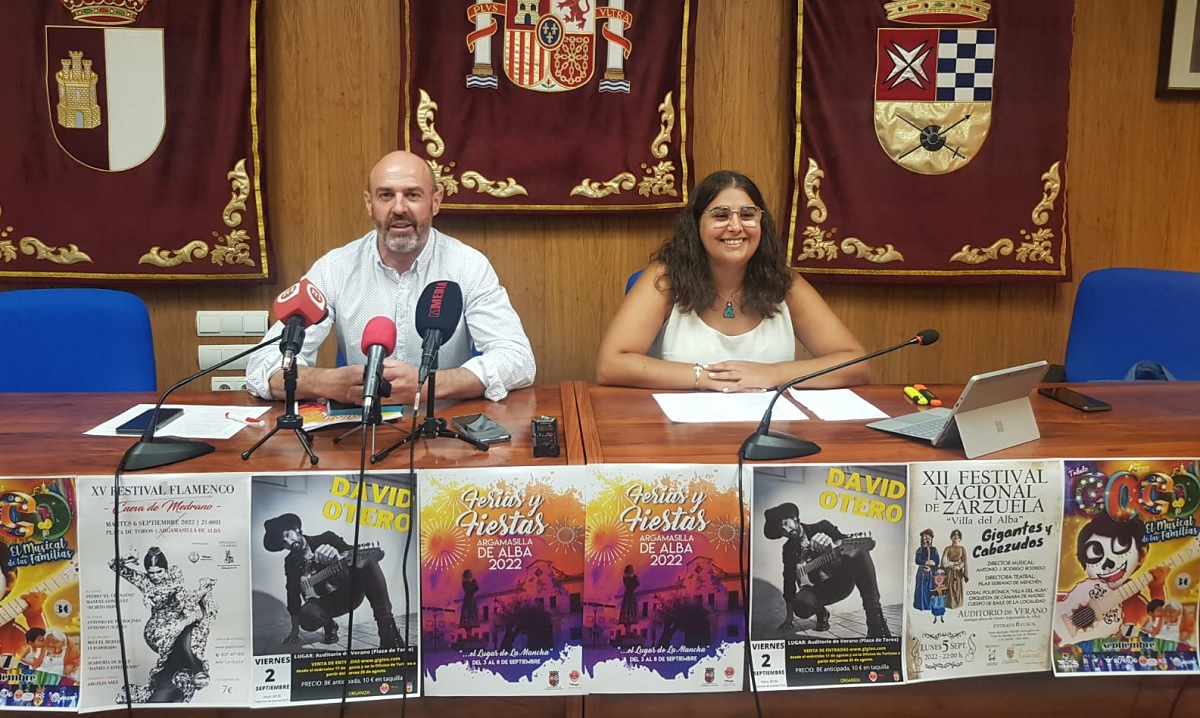 El alcalde de la localidad ciudadrealeña de Argamasilla de Alba, Pedro Ángel Jiménez, y su concejala de Festejos, Alba Hilario, han presentado este miércoles un amplio abanico de actividades para su Feria y Fiestas en honor a su patrona, la Virgen de Peñarroya, copadas por el concierto de David Otero, que se llevará a cabo en el municipio manchego el próximo 2 de septiembre.