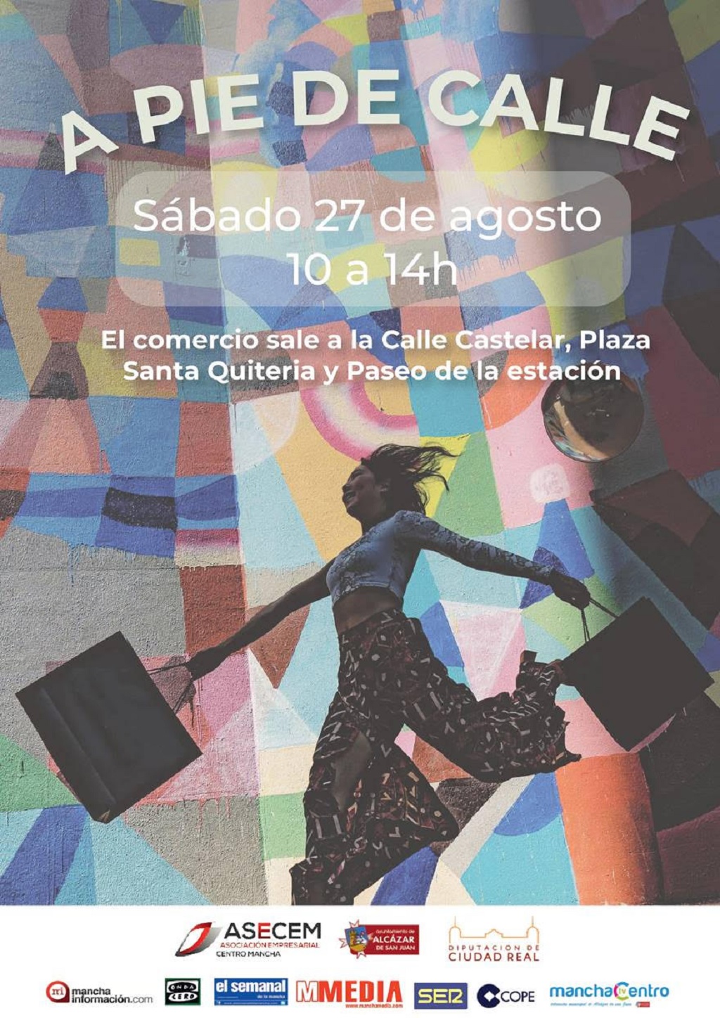 La asociación de empresarios ASECEM ha informado que este sábado, 27 de agosto, se llevará a cabo una nueva edición de “A pie de calle”, en la que el comercio alcazareño sale a las calles de la ciudad para exponer sus ofertas y promociones.