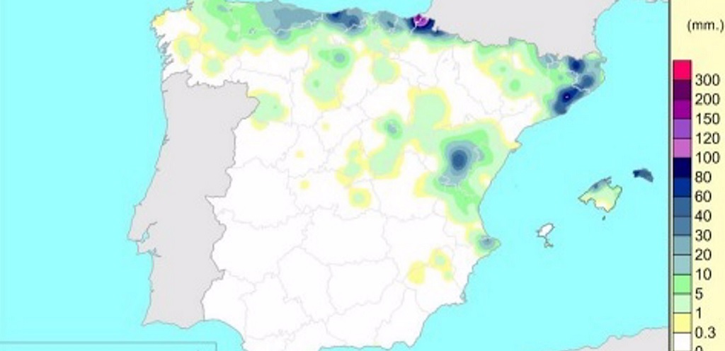 Se alcanzaron los 60 litros por metro cuadrado de precipitación acumulada en zonas costeras de Cataluña, Asturias, Cantabria, País Vasco y Navarra donde se alcanzaron los 200 litros por metro cuadrado. En el norte de Mallorca y en la isla de Menorca se alcanzaron los 60 litros por metro cuadrado precipitación.