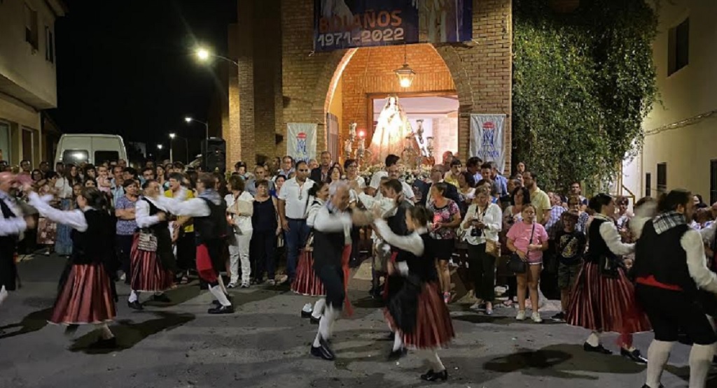 Tras la llegada, la procesión concluyó con el disparo de cohetes y una muestra de de bailes y tradicionales populares a cargo del Grupo folklórico de Coros y Danzas ‘Alabarderos’ de Bolaños.