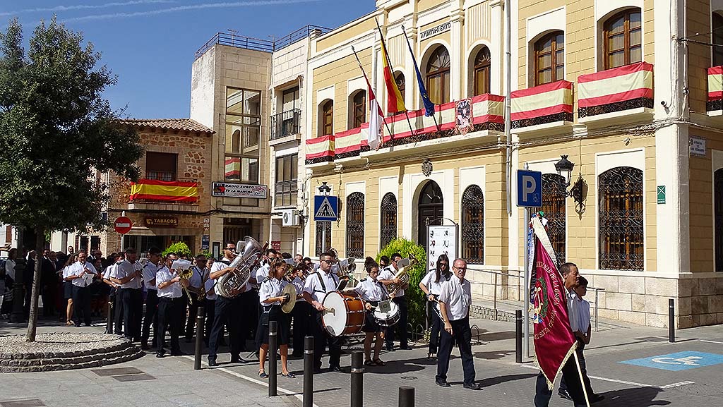 La mañana del domingo comenzaba con el recibimiento en casa de Rufino Bretón, el Mayordomo Mayor, de los miembros de la Mayordomía y de la Banda Sinfónica Municipal dirigida por Sebastián Heras desde donde partieron en pasacalles hasta el Ayuntamiento. Allí eran recibidos por el alcalde, Juan Carlos Navalón y concejales de la Corporación Municipal así como por la Reina y Damas de las Fiestas.