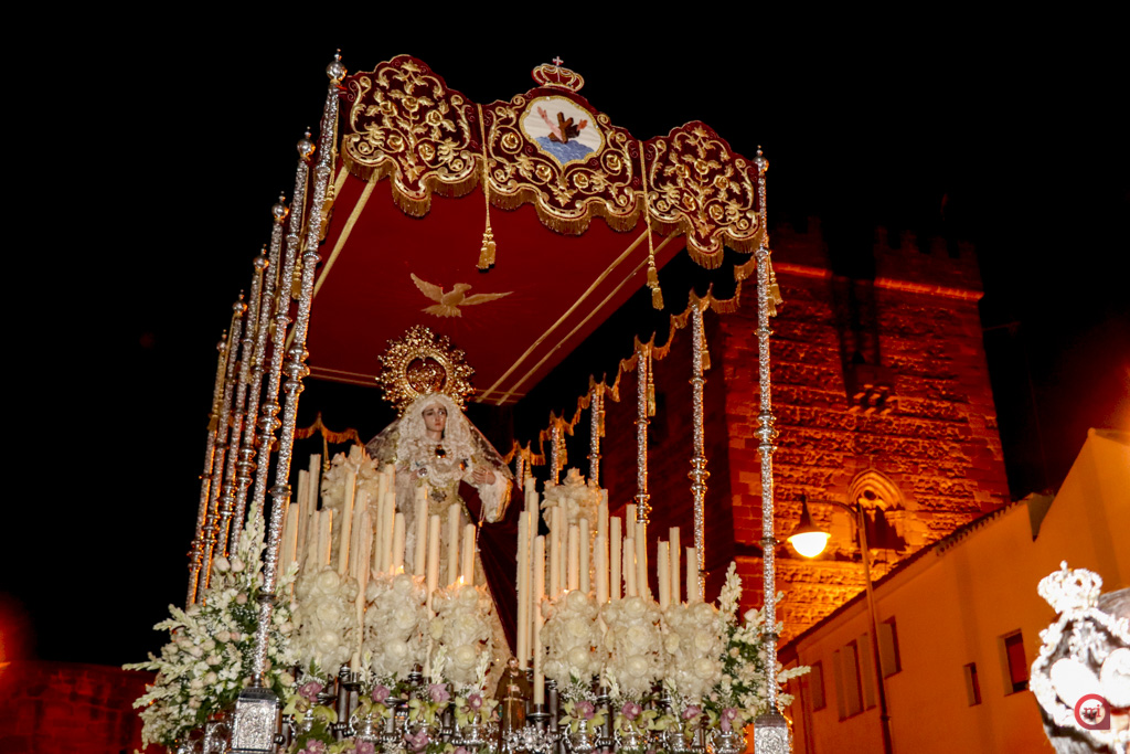 El principal acto se ha celebrado en la tarde del sábado 17 de septiembre y ha consistido en la salida extraordinaria en solemne procesión de la titular de la Cofradía hasta la Parroquia de Santa María la Mayor, parroquia a la que pertenece por situación el Convento de San Francisco de Asís de la localidad. Una procesión que ha contado con imágenes inéditas de la imagen discurriendo por lugares que no suele pasar en sus salidas con motivo de la Semana Santa alcazareña. La Dolorosa se ha podido ver en un sitio tan emblemático como es la puerta de Santa María con el Torreón del Gran Prior como testigo.