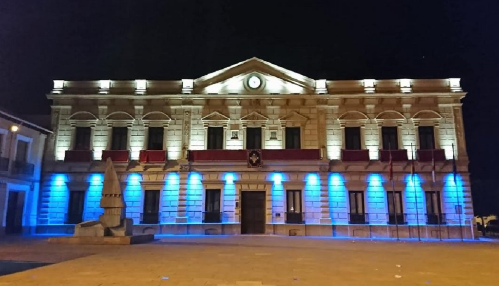 La fachada del Ayuntamiento, los molinos de viento y la rotonda de la máquina del tren, se iluminarán el sábado 1 de octubre y el domingo 2 de octubre, con los colores azul y blanco con motivo de las Fiestas Patronales que se celebran este fin de semana en honor a la Virgen del Rosario.