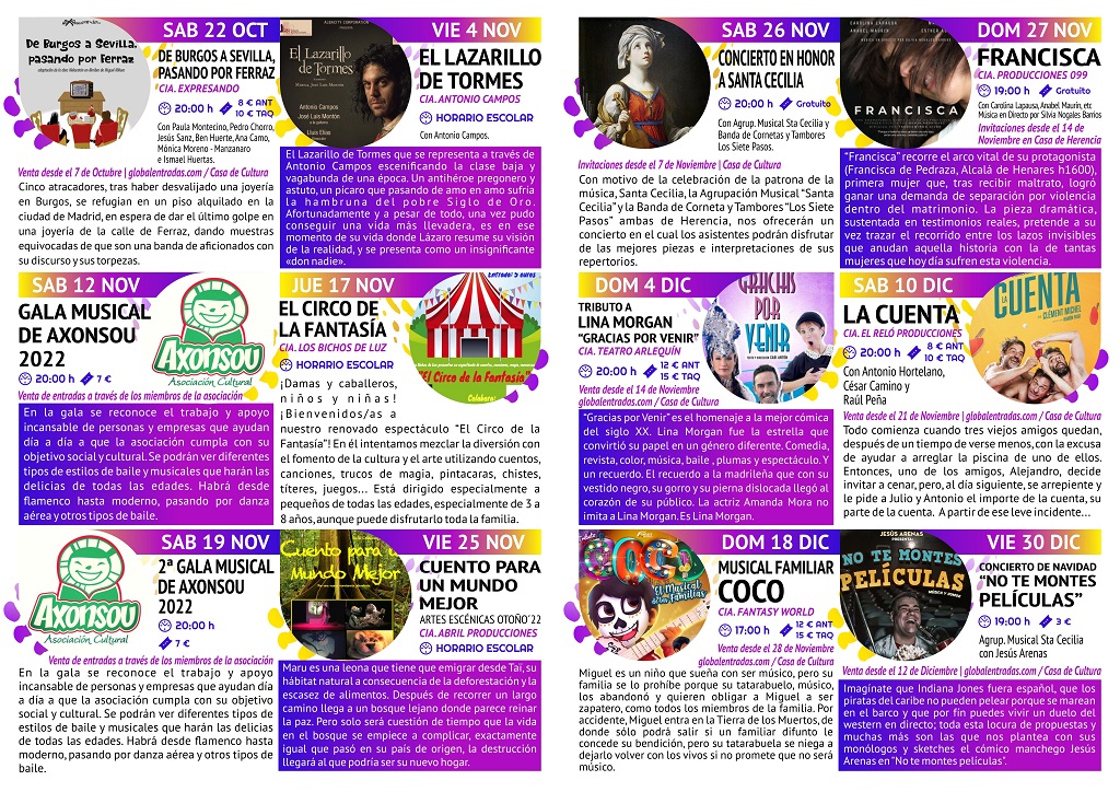 Comienza una nueva temporada en el Auditorio Municipal de Herencia. El área de Cultura y Festejos ha presentado la nueva campaña que dará comienzo el próximo sábado 22 de octubre con la obra de teatro “De Burgos a Sevilla pasando por Ferraz”.
