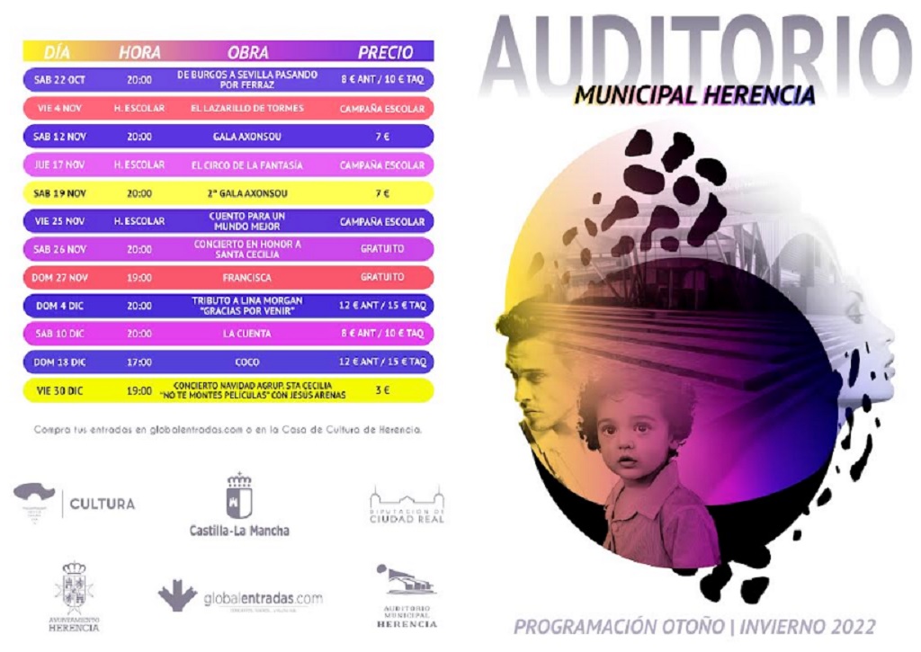 Comienza una nueva temporada en el Auditorio Municipal de Herencia. El área de Cultura y Festejos ha presentado la nueva campaña que dará comienzo el próximo sábado 22 de octubre con la obra de teatro “De Burgos a Sevilla pasando por Ferraz”.