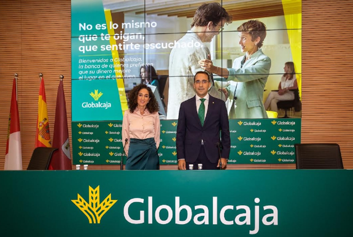 El director general de Globalcaja, Pedro Palacios, acompañado por la responsable de Comunicación y Marca, Lucía Mallol, ha presentado esta mañana la nueva campaña corporativa de la entidad, ‘No es lo mismo’. El hilo argumental de la campaña, con un spot como pieza principal, está en el sentimiento cada vez más arraigado en la sociedad de despersonalización y falta de atención en multitud de ámbitos.