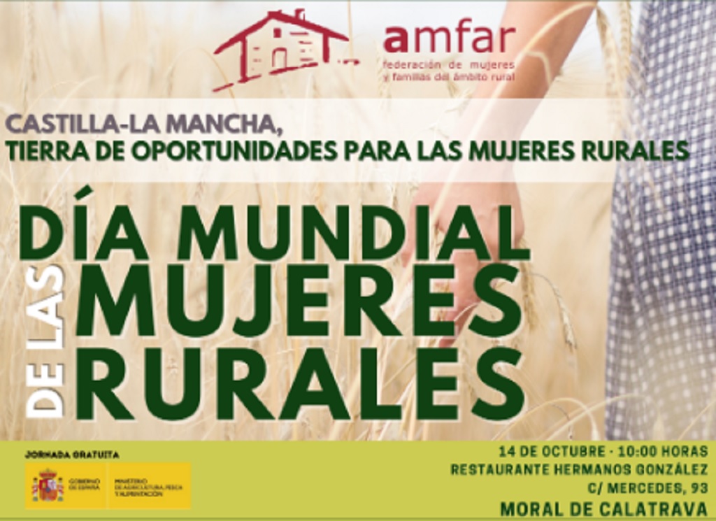 El acto central tendrá lugar este viernes, 14 de octubre, en Moral de Calatrava (Ciudad Real), bajo el lema “Castilla-La Mancha, Tierra de Oportunidades para las Mujeres Rurales”, que reunirá a más de 300 mujeres de la provincia de Ciudad Real, y que contará con la participación de la presidenta nacional de AMFAR, Lola Merino.