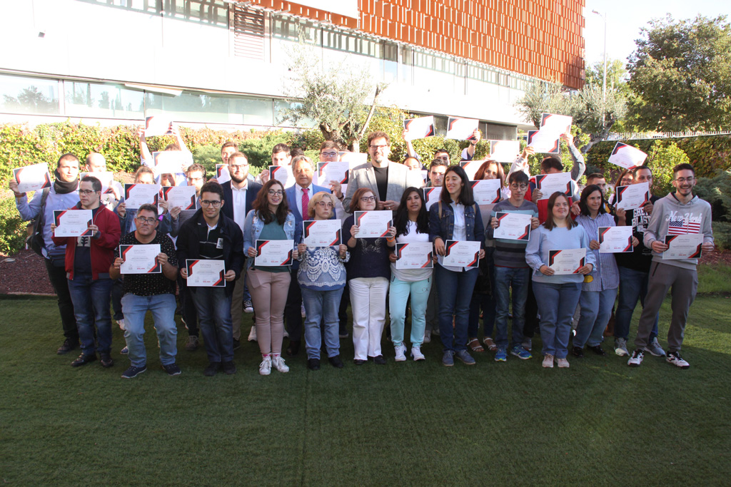 Casi 50 alumnos han recogido de manos del director de Fundación Soliss, César María Duro; el presidente DE CIEES y Grupo CECAP, Andrés Martínez Medina; y el director del área de Capacitación Laboral y Emprendimiento del Servicio de Capacitación CECAP, Francisco Gálvez, su diploma acreditativo, con lo que se les facilita, aún más, el acceso al mercado laboral de estos participantes en riesgo de exclusión por razones de discapacidad.