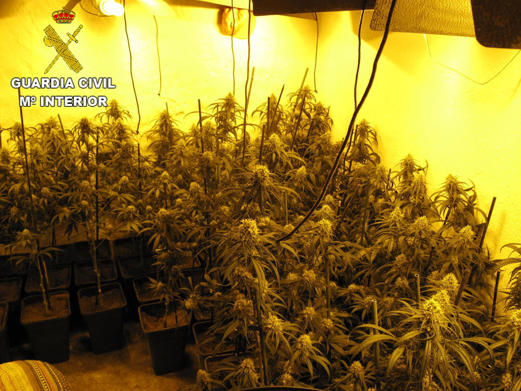 La Guardia Civil ha desarticulado e intervenido una plantación de cannabis sativa destinada al tráfico de drogas en la localidad de Villacañas con 487 ejemplares adultos y 100 gramos de cogollos secos, listos para salir al mercado ilegal.