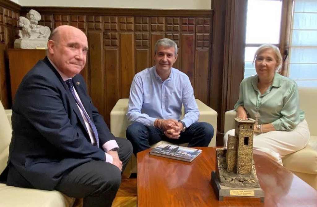 Álvaro Gutiérrez recibía en la Diputación de Toledo a José María San Román y a Rosario San Román, quienes le hacían entrega del libro “Funeraria San Román, 175 años de historia de una empresa familiar de Toledo”, que recoge la creación y trayectoria de esta empresa familiar y del sector más antigua del sector en España.