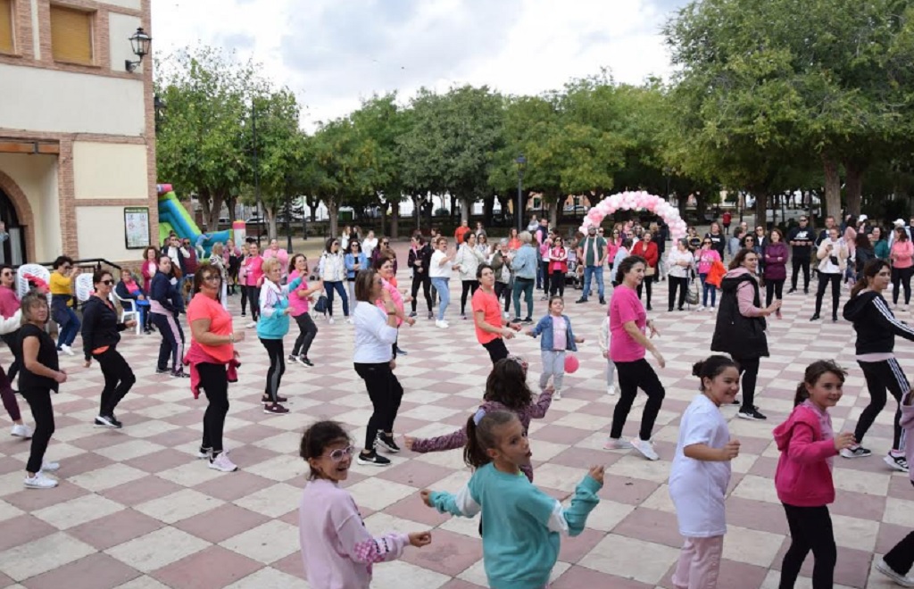 El color rosa, símbolo de la lucha contra el cáncer de mama, imperó en Miguel Esteban en una jornada que finalizó con una master class de zumba a cargo del Gimnasio Mueve-T, además de un castillo hinchable para los niños y un aperitivo degustación.
