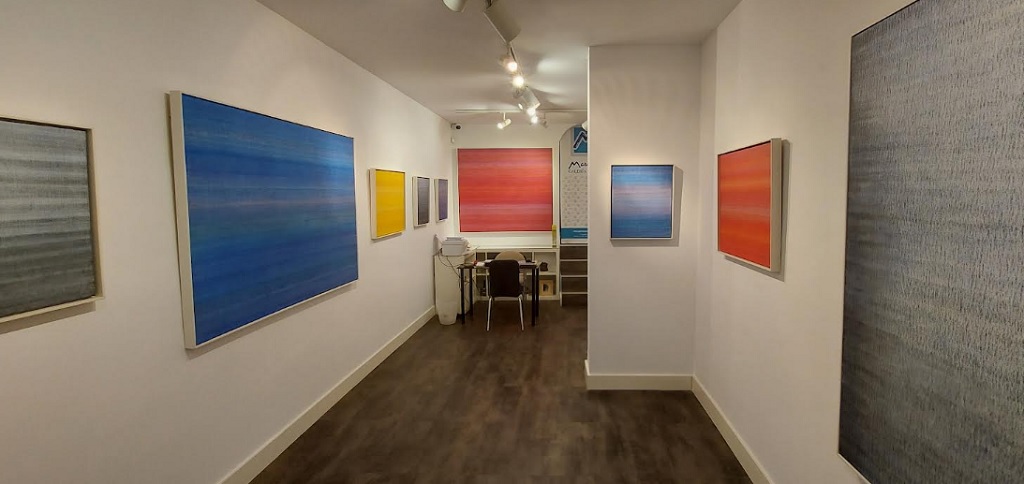 El título de la exposición es “La suma” en alusión a la suma de pinceladas que se superponen creando entramados y renglones infinitos.