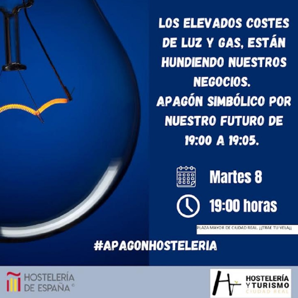 En Ciudad Real se realizará un apagón simbólico de 5 minutos, a las 19 horas de mañana martes 8 de noviembre en la Plaza Mayor de Ciudad Real, momento en el que -iluminados con velas- se leerá un Manifiesto con las medidas que el sector hostelero nacional demanda al Gobierno, medidas extrapolables a otros sectores económicos. Por ello, se ha sumado también como apoyo a la misma tanto FECIR como la Asociación de Comercio de esta organización empresarial.