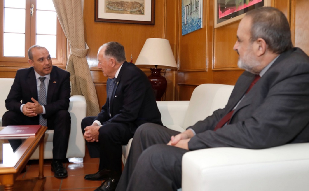 El presidente de las Cortes de Castilla-La Mancha, Pablo Bellido, ha recibido este miércoles al presidente del Consejo Social de la Universidad de Castilla-La Mancha (UCLM), Félix Sanz Roldán, que le ha hecho entrega de una copia de la Memoria anual del organismo.