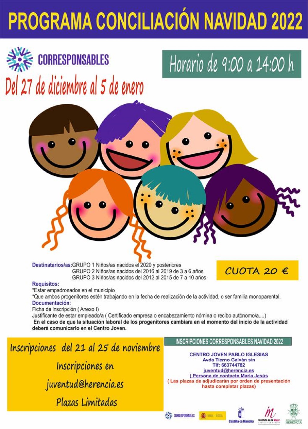 El Ayuntamiento de Herencia pone de nuevo en marcha el programa Navidad Conciliadora cumpliendo así el compromiso anunciado con las familias de la localidad para compatibilizar el cuidado de menores, con el trabajo y otros aspectos del día a día.