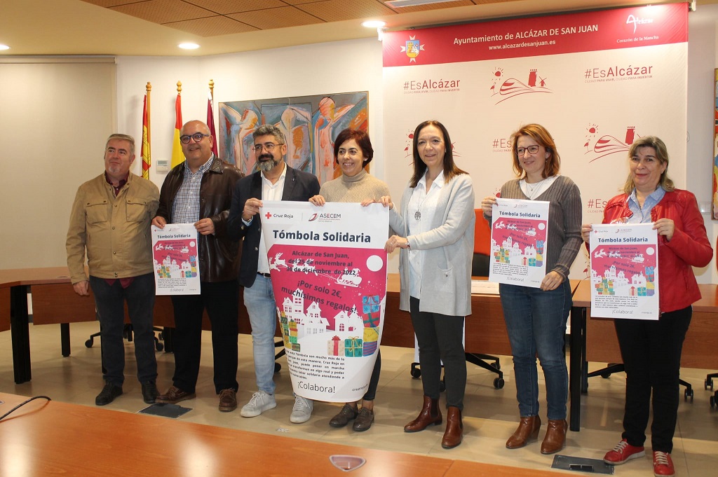 Cruz Roja ha presentado esta tarde en la sala de comisiones del Ayuntamiento de Alcázar de San Juan la tómbola solidaria que va a desarrollar entre los días 25 de noviembre y 30 de diciembre en la localidad y que repartirá 550 premios entre las personas que quieran apoyar la iniciativa.
