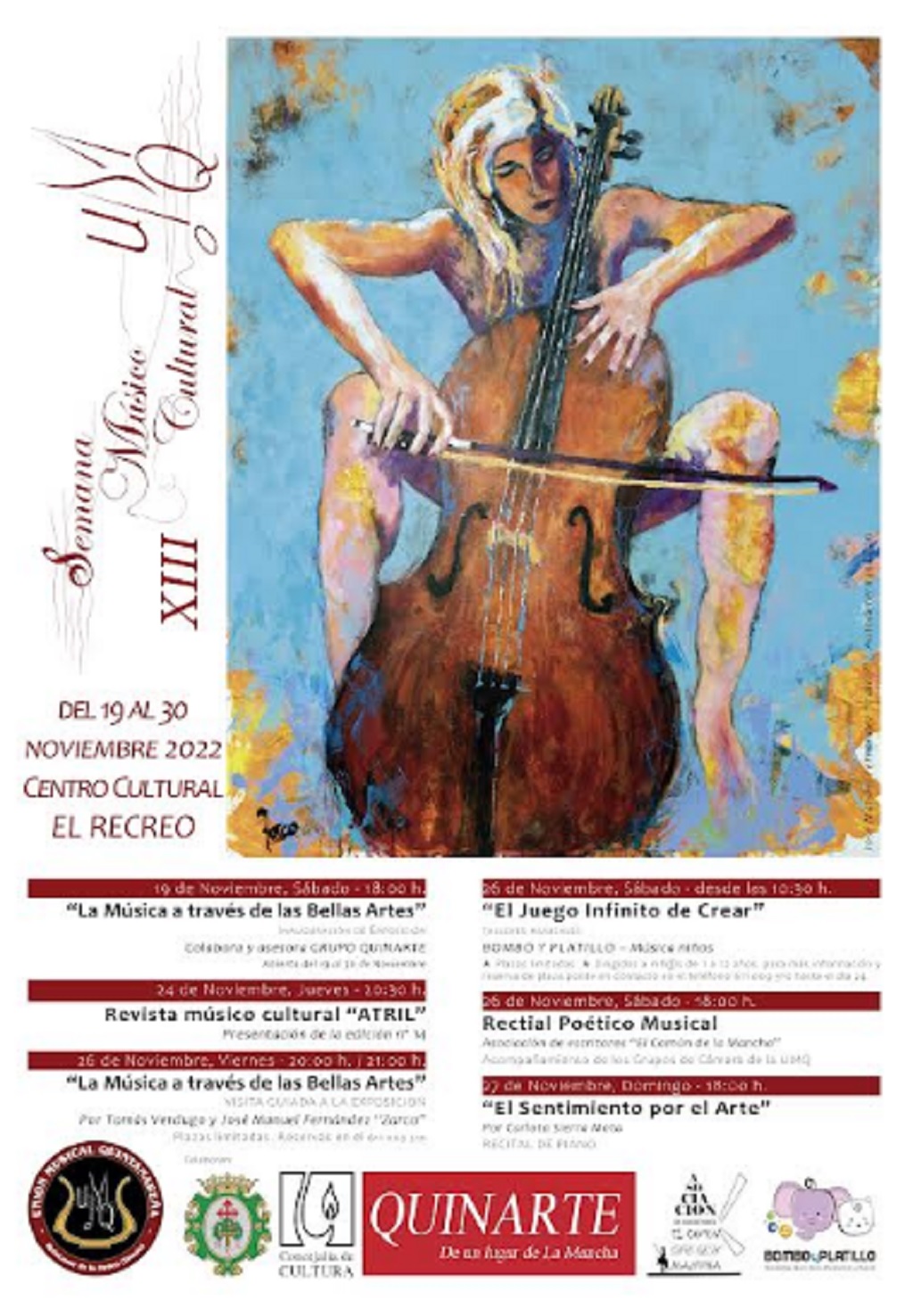 Así, se comenzará el sábado 19 de noviembre a las 18.00 horas con la inauguración de la exposición ”La Música a través de las Bellas Artes”, una muestra que cuenta con la colaboración y asesoramiento del Grupo Quinarte y que recoge una colección de artistas manchegos, que colgarán sus obras en las paredes de “El Recreo”, donde se podrá observar y contemplar la interacción entre la música y las bellas artes.
