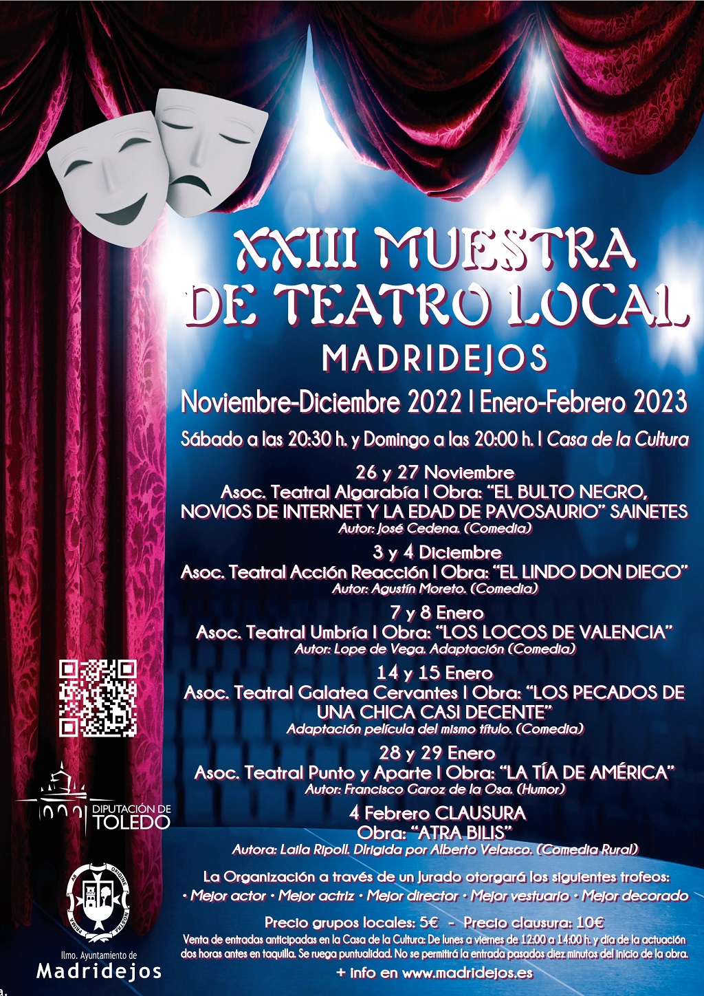 Madridejos abre el telón para disfrutar de la Muestra de Teatro Local, siendo una iniciativa cultural organizada por el Ilmo. Ayuntamiento de Madridejos, que se viene celebrando en el municipio durante más de veintidós años, donde los grupos de teatro locales darán a conocer su trabajo desde finales del presente mes de noviembre y hasta enero de 2023 en la Casa de la Cultura.
