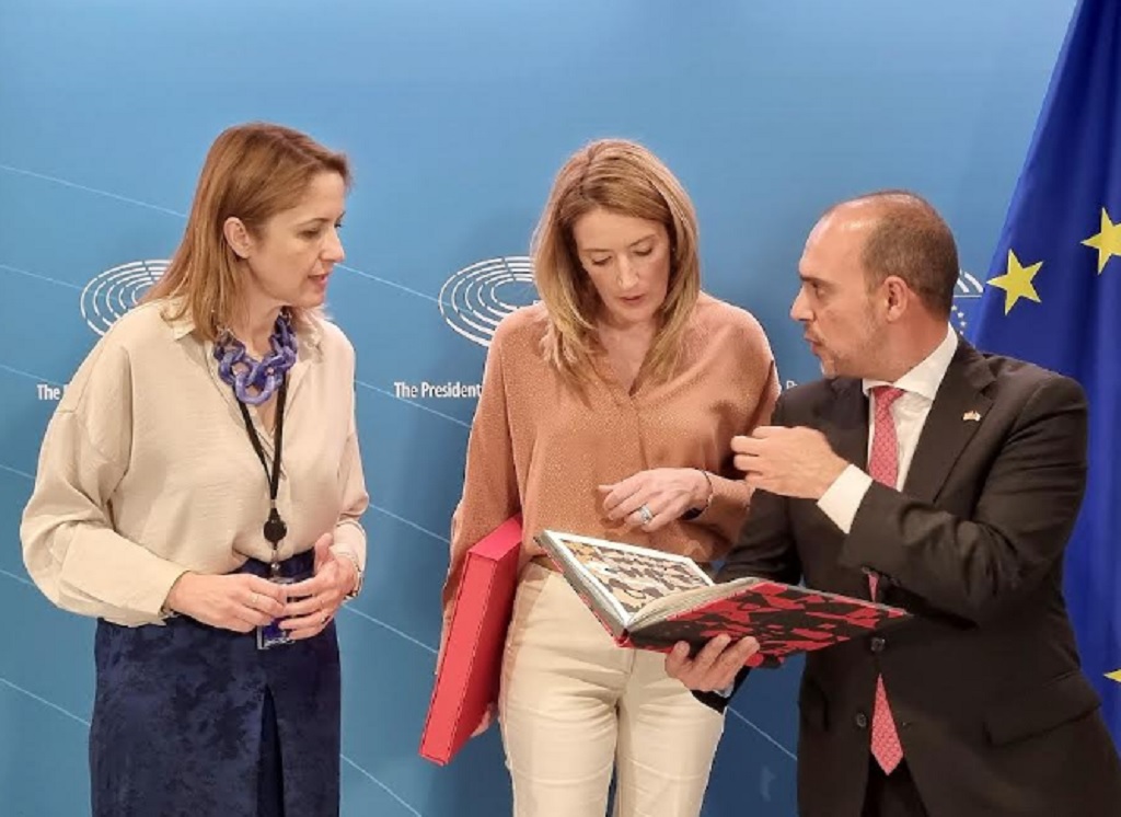 El presidente de la Cámara regional, que ha estado acompañado en su visita al parlamento en Bruselas por la eurodiputada castellanomanchega Cristina Maestre, ha entregado este volumen especial a Metsola, durante un encuentro en el despacho de la presidenta maltesa.