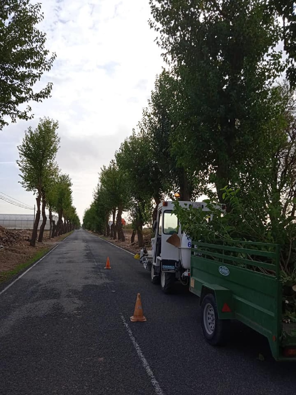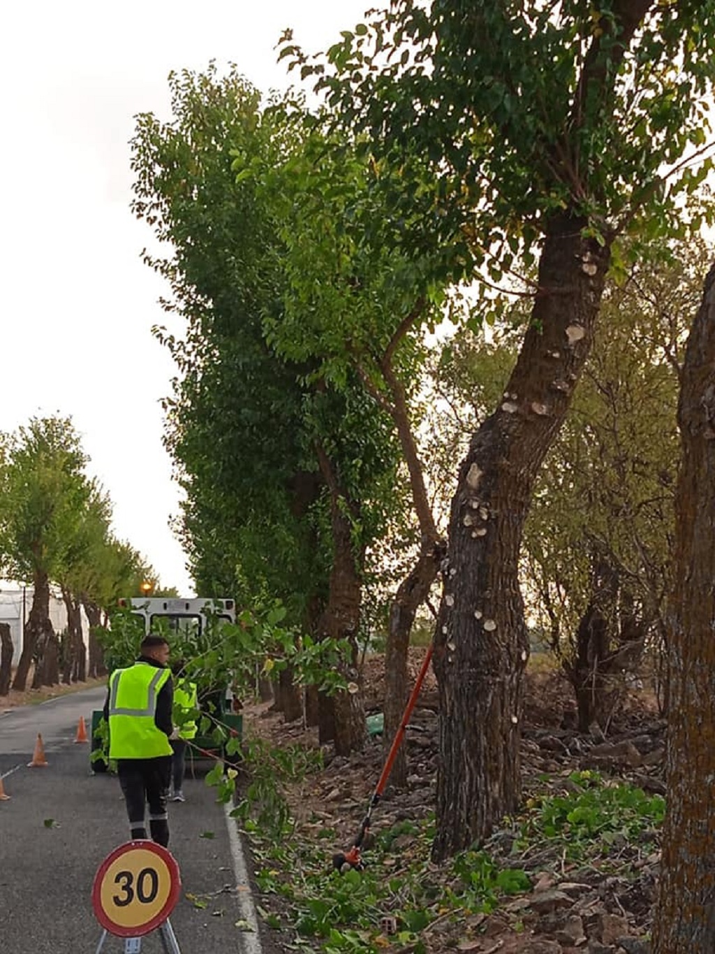 Desde la concejalía de Medio Ambiente del Ayuntamiento de la localidad ciudadrealeña de Llanos del Caudillo se ha procedido a la poda de árboles y limpieza de residuos en la cuneta de la carretera de acceso a población desde la autovía A-4.