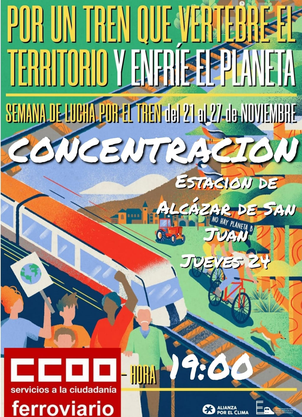 Izquierda Unida ha registrado, para su debate y aprobación en el próximo pleno ordinario del Ayuntamiento de Alcázar de San Juan, la moción «Por un tren que vertebre el territorio y enfríe el planeta». Moción que va acompañada por la convocatoria de una concentración que tendrá lugar el próximo jueves 24 de noviembre, a las 19 horas, en la Estación de Tren alcazareña.