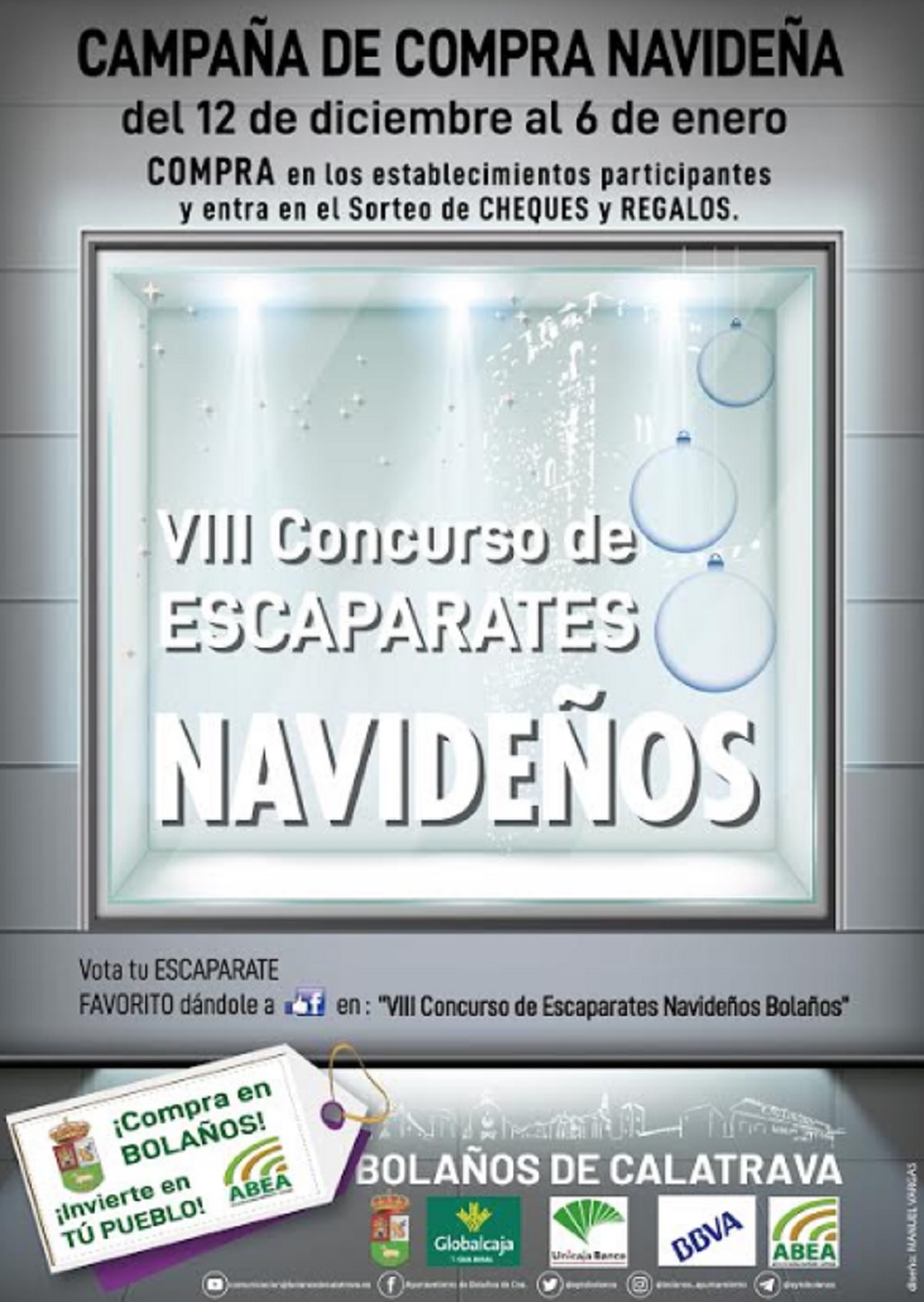Con la llegada de la Navidad, el Ayuntamiento de Bolaños, a través de la Concejalía de Comercio y Promoción Económica junto a la Asociación Bolañega de Empresarios y Autónomos (ABEA), ha publicado un año más las bases de la octava edición del Concurso de Escaparates Navideños, bajo la campaña “Compra en Bolaños. Invierte en tu pueblo”.