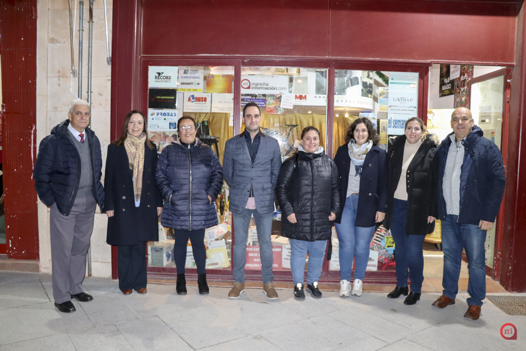 Una vez presentada la Cesta han procedido al descubrimiento de la misma en el local de la Plaza de España con la asistencia del Hermano Mayor, Rafael Quirós, la alcaldesa, Rosa Melchor, la concejala de comercio, Bárbara Sánchez-Mateos y varios miembros de la Cofradía.