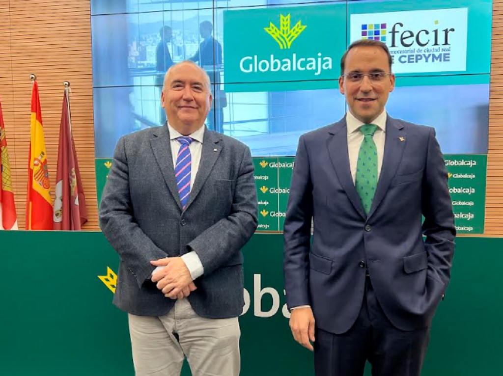 El director general de Globalcaja, Pedro Palacios, y el presidente de la Federación de Empresarios de Ciudad Real (FECIR CEOE-Cepyme), Carlos Marín, han renovado el convenio de colaboración, en virtud del cual la entidad financiera ofrecerá a las empresas y profesionales autónomos asociados a FECIR, así como a sus trabajadores y a la propia FECIR, una oferta integral de productos y servicios bancarios en condiciones ventajosas.