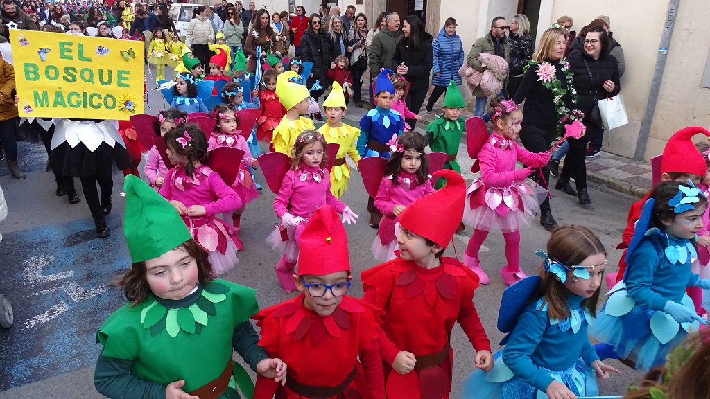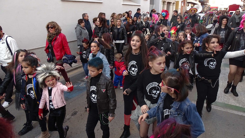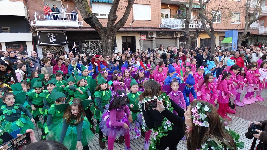 Desde primera hora de la tarde, cerca de 300 alumnos y alumnas de los diferentes centros educativos de la localidad se daban cita en la Plaza de la Constitución para participar en la exhibición infantil y juvenil de disfraces y coreografías y poner así la nota de color a esta tarde de febrero.