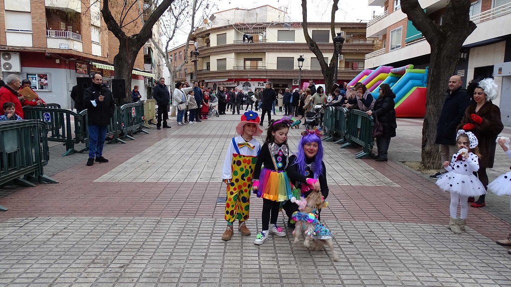 Ya por la tarde, el ambiente carnavalero se trasladaba al Paseo Juan Carlos I donde se celebraba el Concurso de Mascotas con la participación de 5 familias con sus respectivas mascotas que escogieron su mejor disfraz para disfrutar de una fantástica tarde pues en el lugar también se instalaron hinchables para los más pequeños. Finalmente, tras la deliberación del jurado el primer premio dotado con un vale de 50€ para canjear en Quintanimal fue para “Los Dalmata” y el segundo premio dotado con un vale de 30€ para canjear en Quintanimal fue para “Castle”. Además se obsequió a todos los participantes con un vale de 5€ para consumir el mismo día en los establecimientos adheridos y un vale de 3€ para canjear en Quintanimal.
