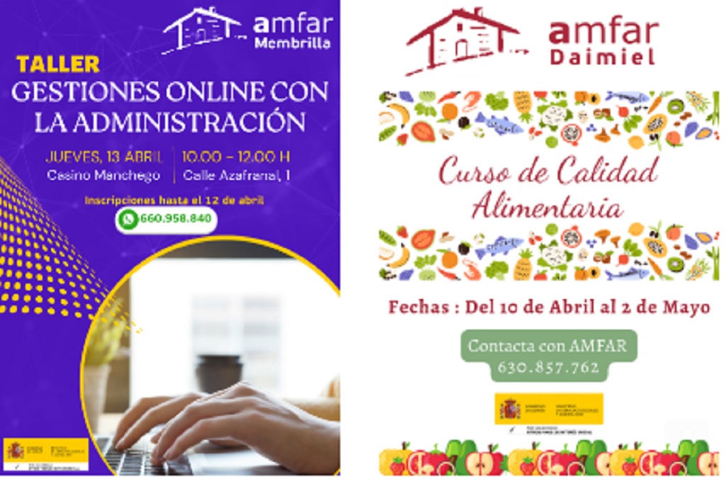 Por último, AMFAR ha organizado un taller sobre “Gestiones online con la Administración” en la localidad de Membrilla (Ciudad Real). Esta actividad tendrá lugar el jueves, 13 de abril, de 10 a 12 de la mañana en el Casino Manchego (Calle Azafranal, 1).