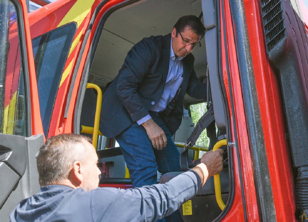 Más de 400.000 euros se han invertido para proteger del fuego y de otras causas de emergencia a los ciudadanos de la provincia y también a los propios efectivos cuando se ven amenazados por la virulencia de las llamas. Precisamente Caballero ha podido comprobar que la dotación del vehículo incluye una función de autoprotección del camión.