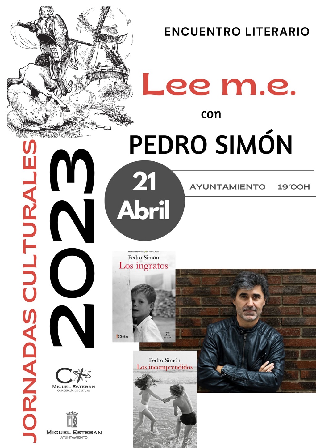 El encuentro, que comenzará a las siete de la tarde en el auditorio del nuevo Ayuntamiento, está enmarcado dentro del proyecto Lee m.e., que desarrolla la Concejalía de Cultura de Miguel Esteban con el objetivo de fomentar el hábito de la lectura entre toda la población facilitando el contacto directo del público con los autores de las obras.