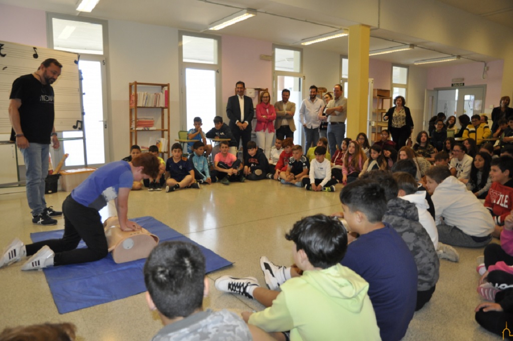 Los escolares y la comunidad educativa del colegio José María de la Fuente de Pozuelo de Calatrava han sido de los primeros en recibir la formación para el correcto uso de los desfibriladores semiautomáticos (DESA) que ha instalado la Diputación de Ciudad Real en 181 centros educativos de Infantil y Primaria de la provincia. El presidente de la institución provincial, José Manuel Caballero, ha comprobado el interés de los alumnos y alumnas y del personal docente por adquirir conocimientos sobre el manejo de la situación y del paciente en caso de parada cardiorespiratoria.