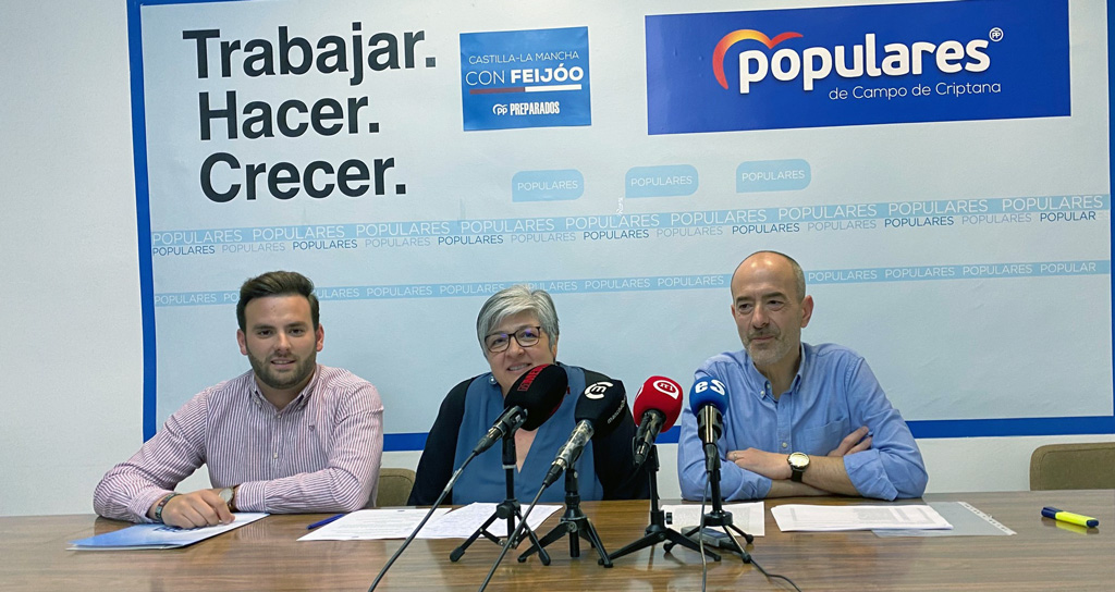 Los concejales del Grupo Popular en el Ayuntamiento de Campo de Criptana, Emiliano Díaz, Ana Mellado y Manuel Sepúlveda, en rueda de prensa, han calificado de “irreal y tardío” el presupuesto municipal para el ejercicio 2023.