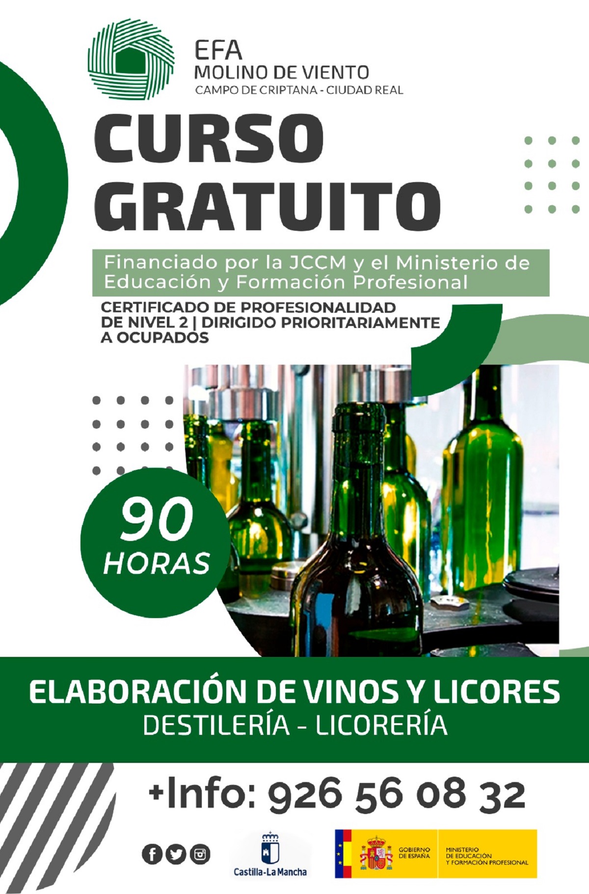 La EFA Molino de Viento de Campo de Criptana (Ciudad Real) ha informado del próximo curso que va a realizar en sus instalaciones, que será de Destilería y Licorería